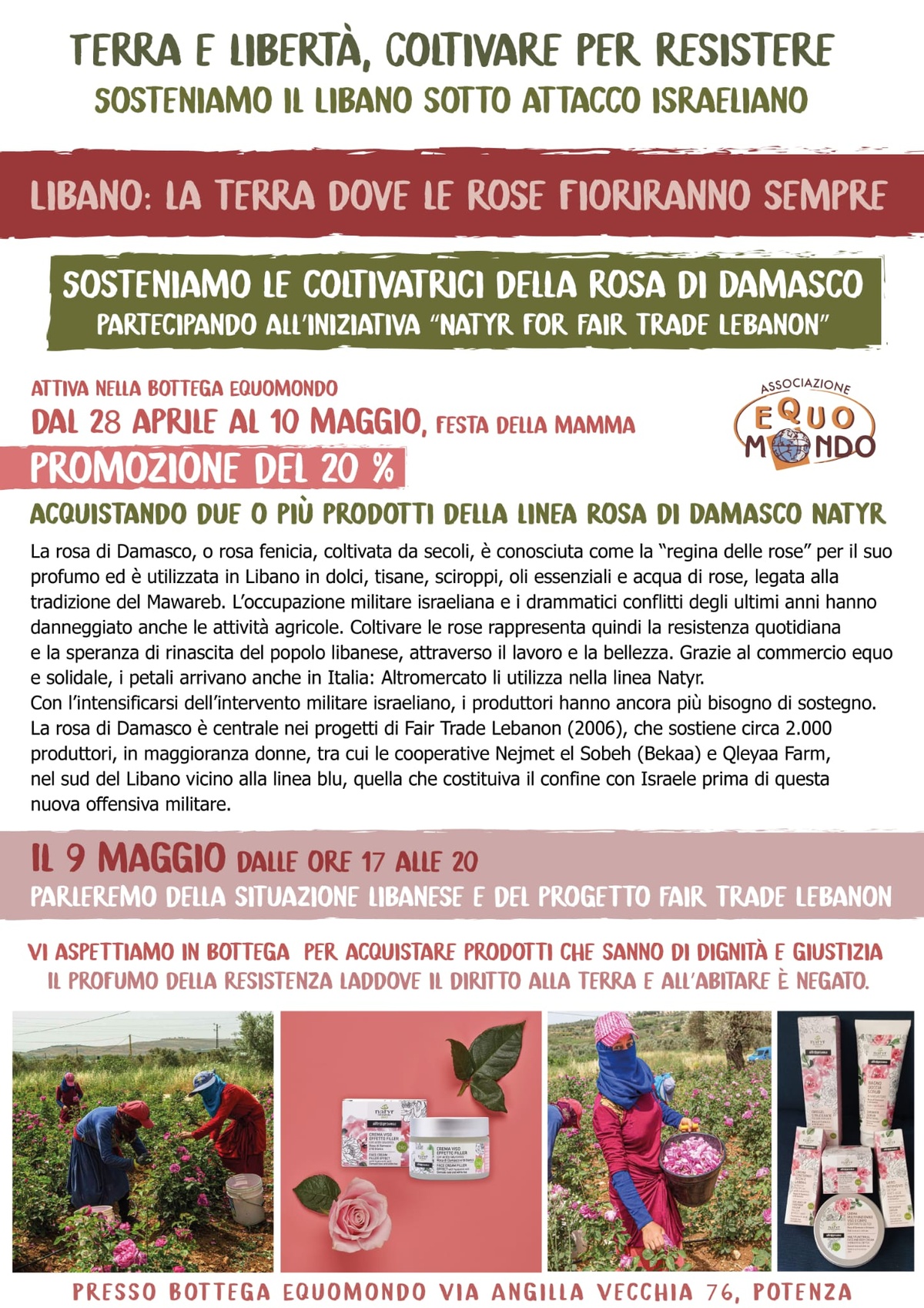 Il 9 maggio alla Bottega Equomondo di Potenza si parlerà del Libano, dell'occupazione coloniale, brutale che sta portando avanti Israele e delle conseguenze fino ad ora del conflitto.