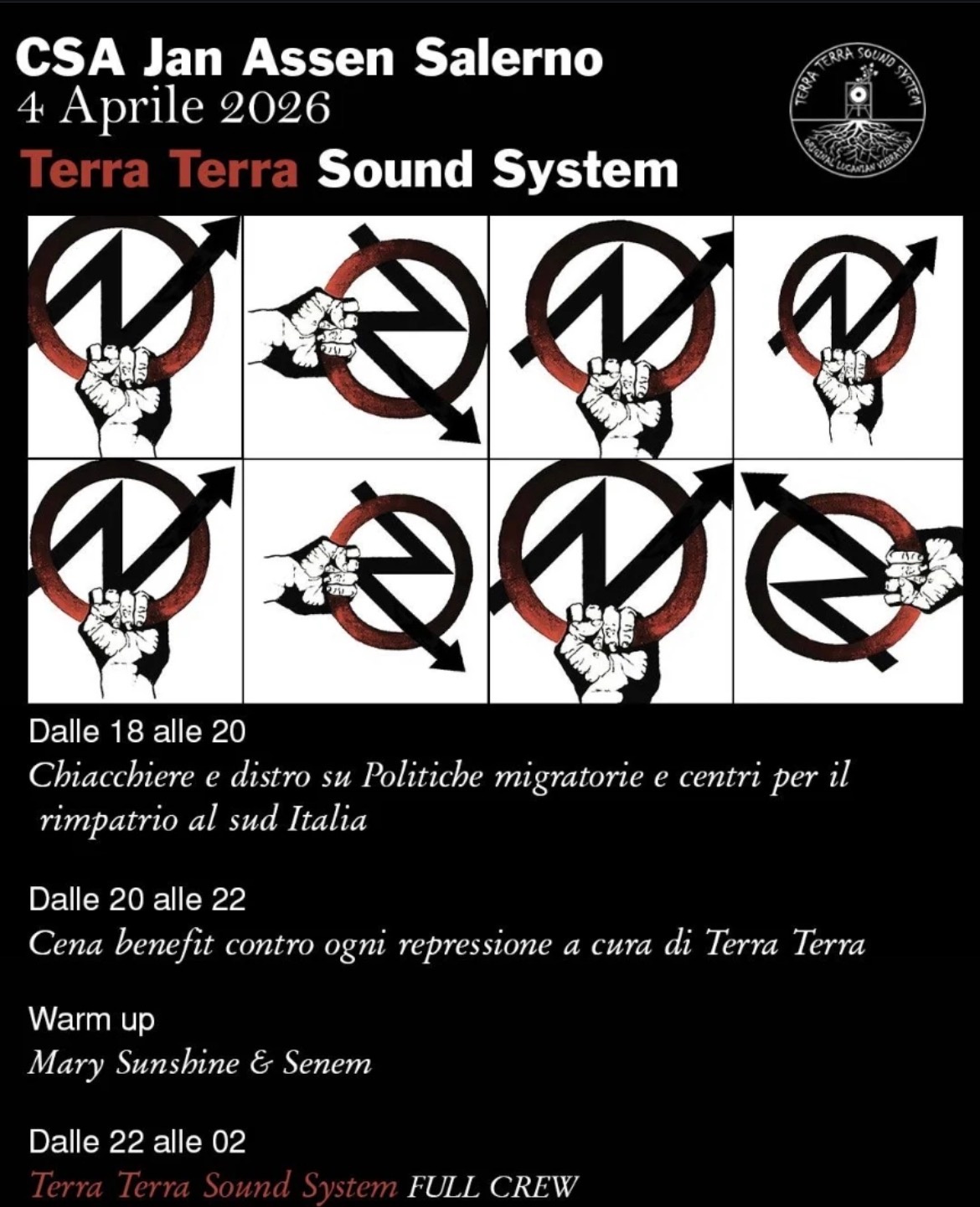 Cena benefit contro ogni repressione a cura di Terra Terra + Warm up Mary Sunshine & Senem